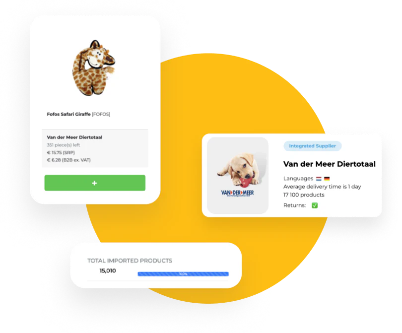 Easily find trending products in our app. Import them to your webshop in just a few clicks, complete with images, descriptions, stock levels, and more.